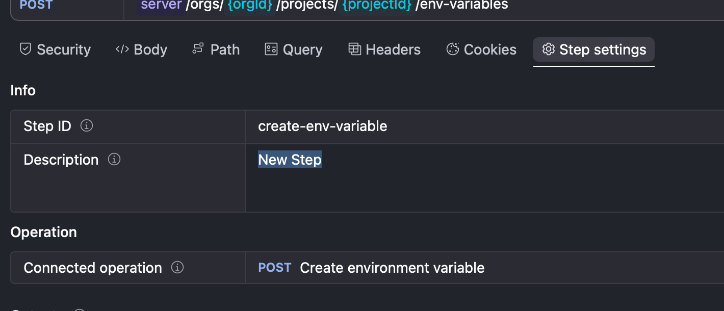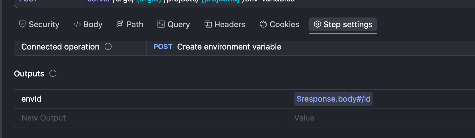 When building output values autocomplete works up until I want to reference a property. It seems it should use the OpenAPI operation response schemas to help me autocomplete the property names.