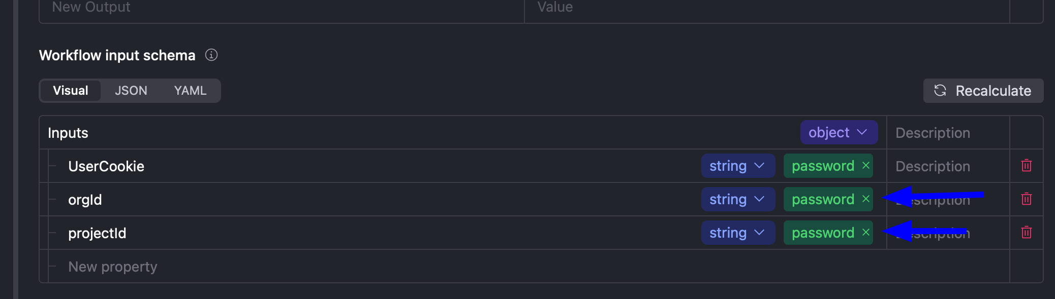 It's weird that it sets the orgId and projectId as passwords because they aren't marked as such inside of the OpenAPI description.